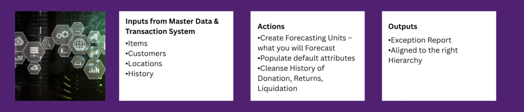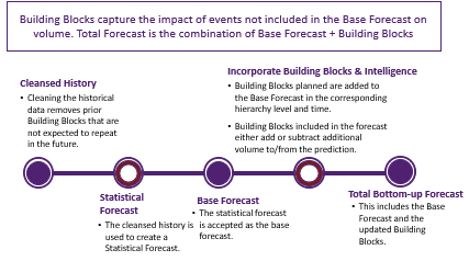 - Identifies realistic trends and patterns in demand based on cleansed history.