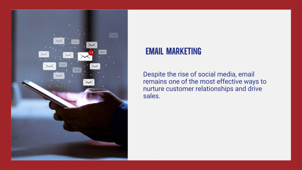 Why it matters: Email marketing has high ROI and allows direct communication with customers.
